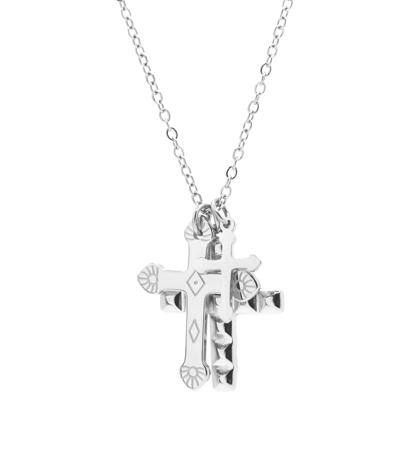 Sara necklace features three stunning crosses that exude power and grace. This piece is a powerful statement of faith and a beautiful complement to any outfit. With its intricate design and strong symbolism, it is sure to inspire a feeling of awe and reverence in whoever wears it.